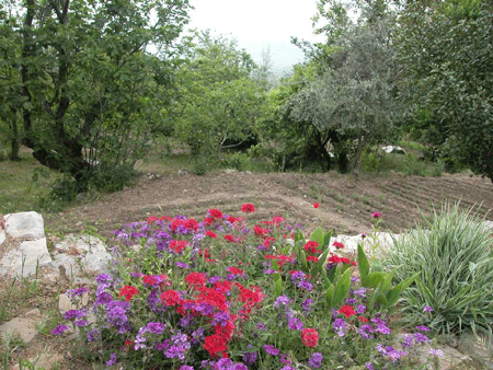 vegetable garden with different kinds of fruit trees. Magnificent view of wild nature. Telephone, no TV,